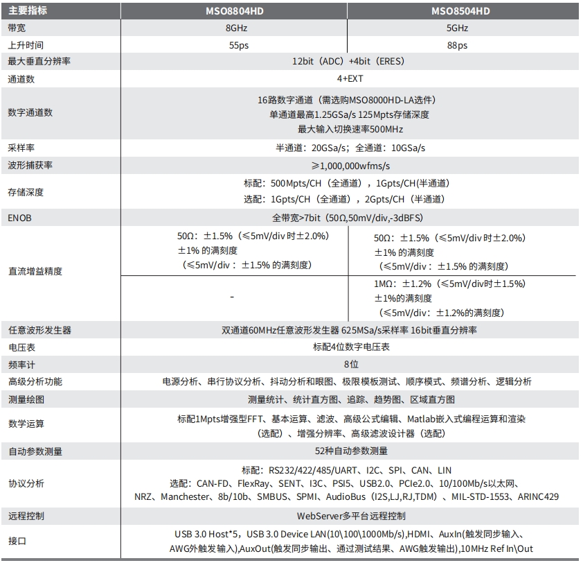 模拟通道带宽:8GHz/5GHz