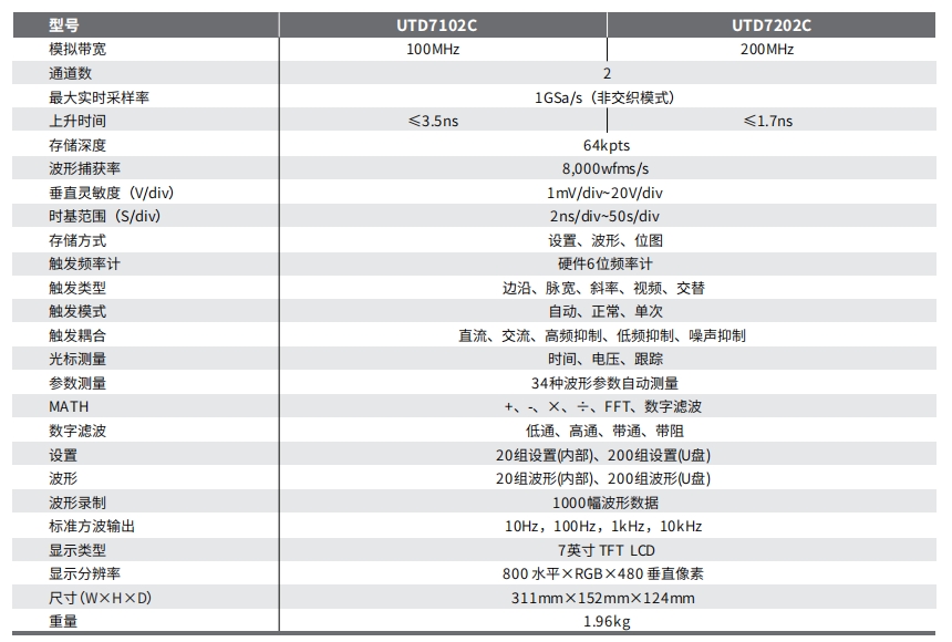 100MHz/200MHz带宽,2个模拟通道