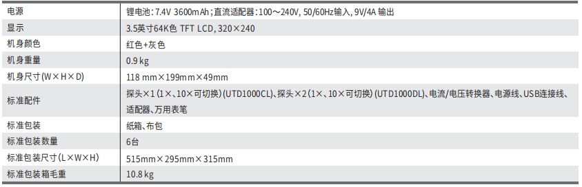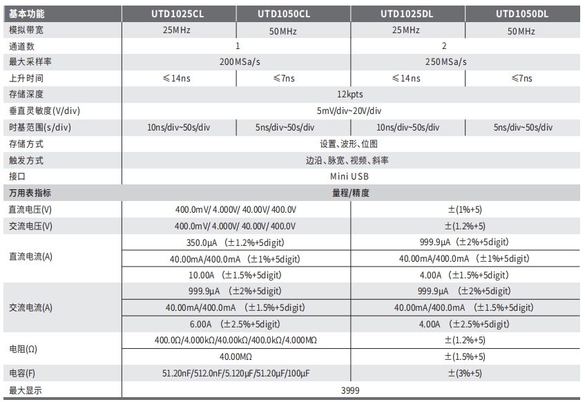 最大采样率:UTD1025CL/UTD1025CL - 200 MSa/s 、 UTD1025DL/UTD1025DL ? 250 MSa/s