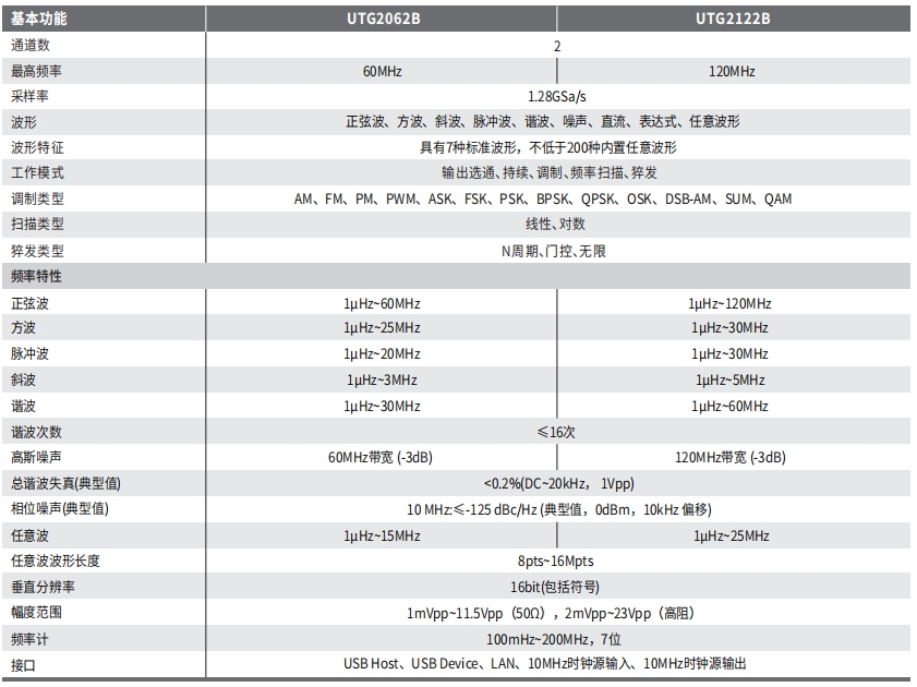 丰富的调制类型:AM、FM、PM、PWM、ASK、FSK、PSK、 BPSK、QPSK、OSK、DSB-AM、SUM、QAM